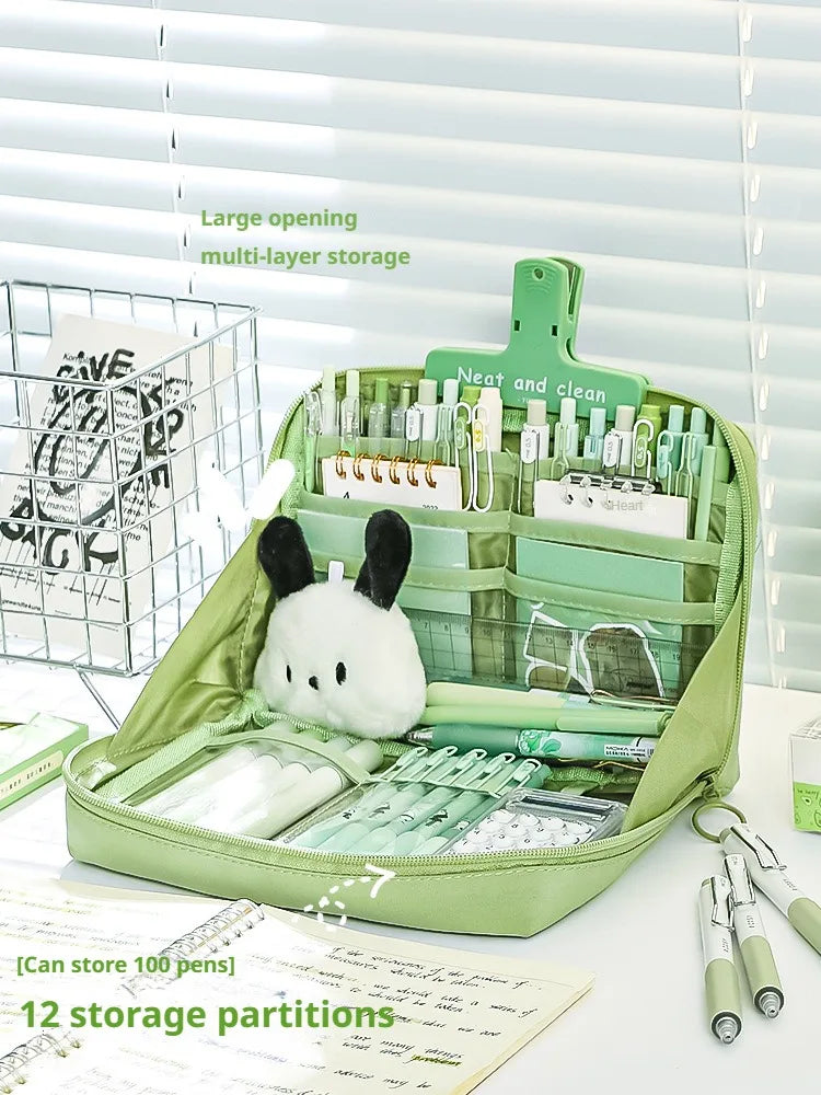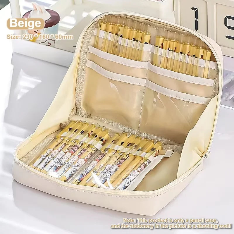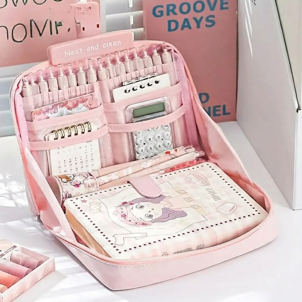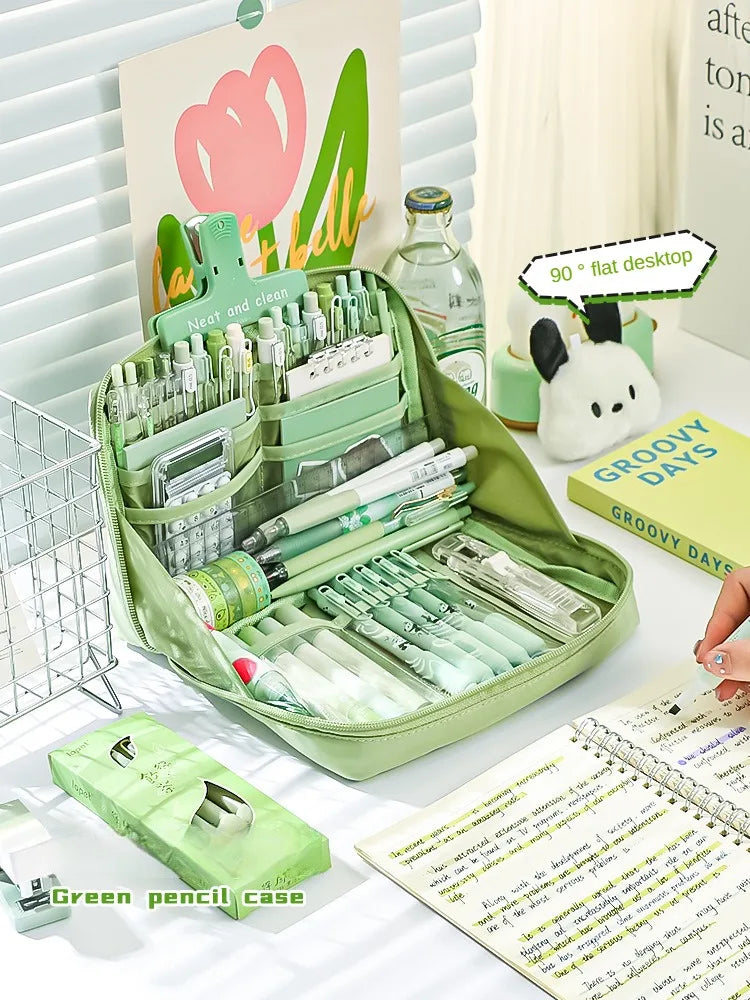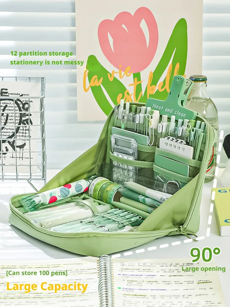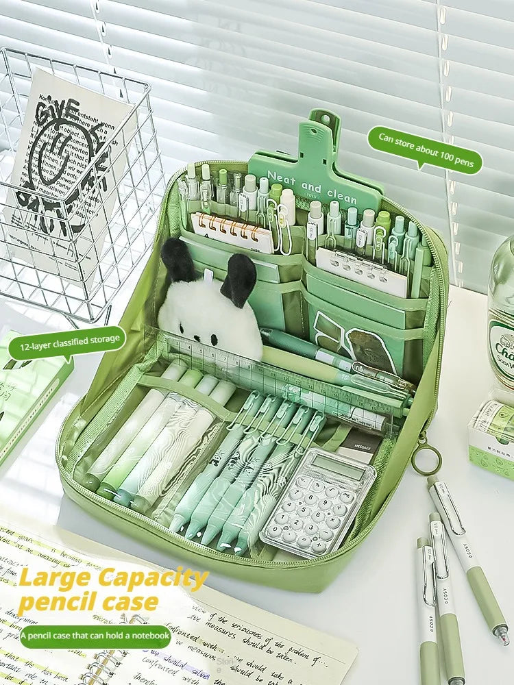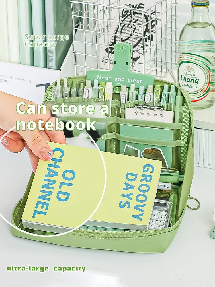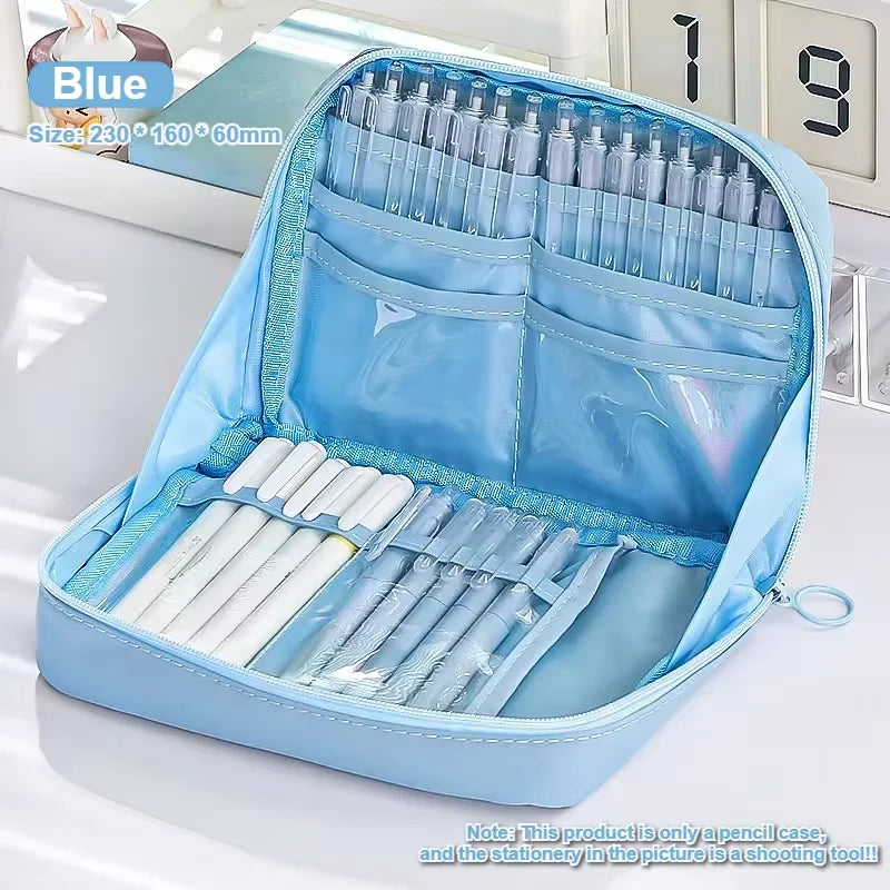 Grande capacidade = canetas, lápis, borracha, régua, adesivos... TUDO organizado!