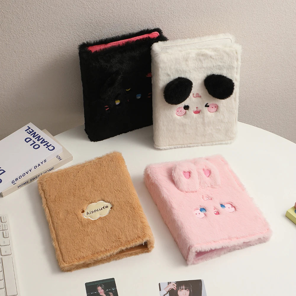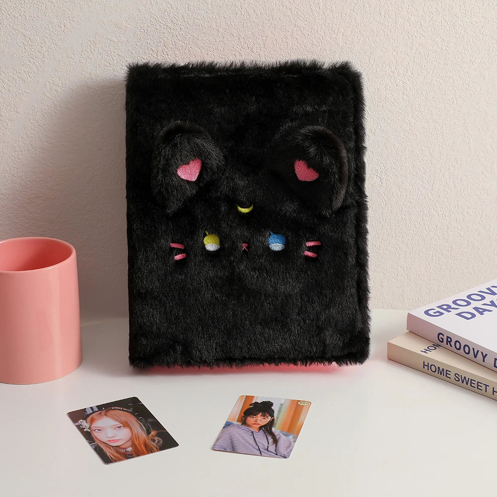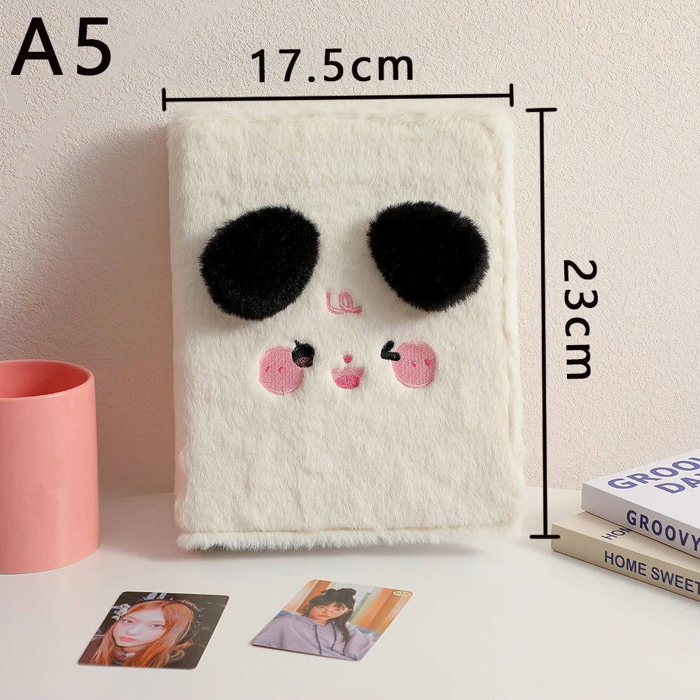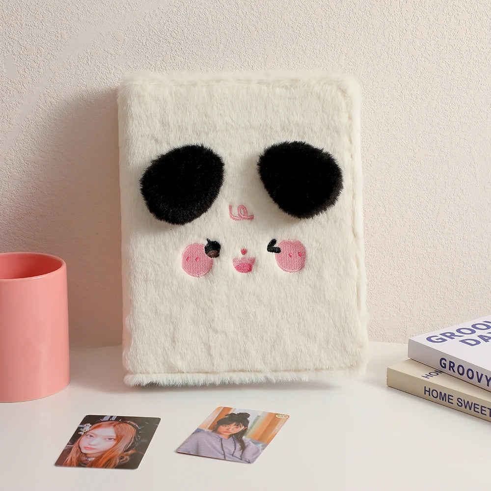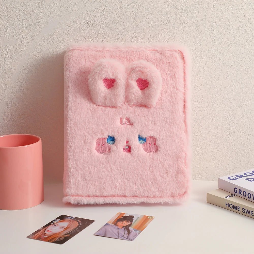 Este Fichário A5 possui uma capa de pelúcia super macia (plush) com design "cute", perfeito para quem ama papelaria criativa e estética K-pop. Versátil, ele funciona tanto como álbum de coleção quanto como capa para diário ou caderno escolar.