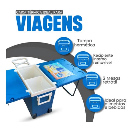 Caixa Super Térmica 32 Litros com Rodinha, 2 Mesas