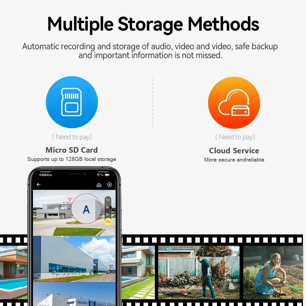 -Support H264 video compression format, three-stream output, TF card storage (maximum support 256GB), cloud storage (need to buy)