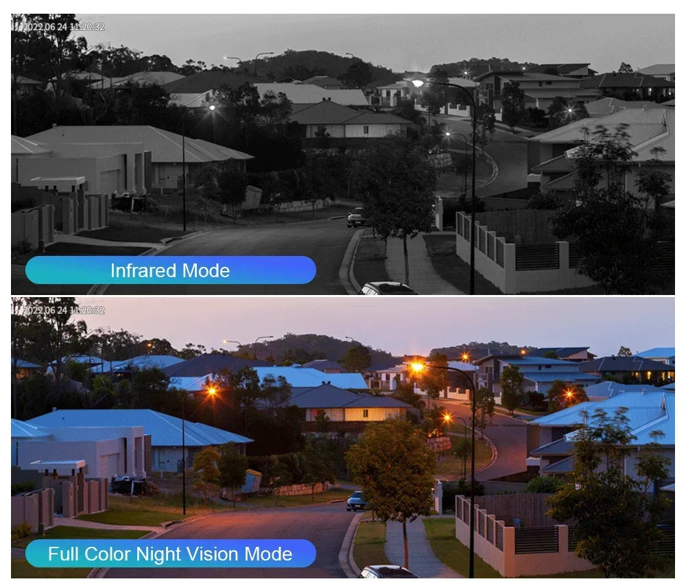 -3 image modes: Smart mode/Infrared mode/Color mode;White light timing start off function;Color mode: White LED light on, day and night are color vision.