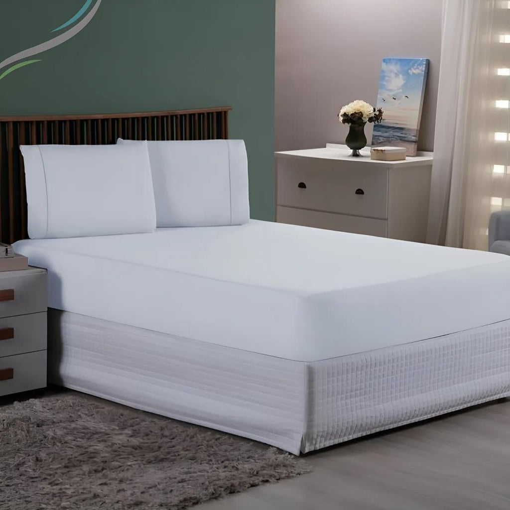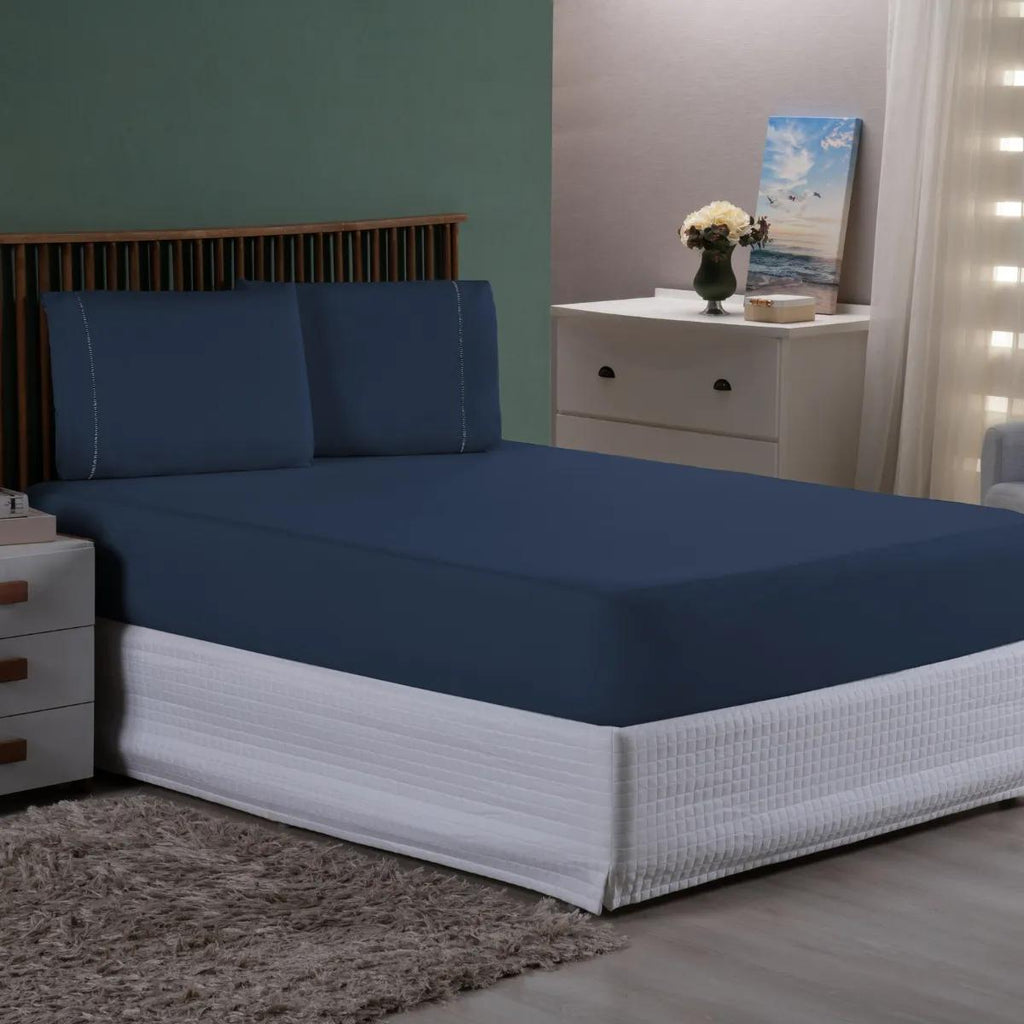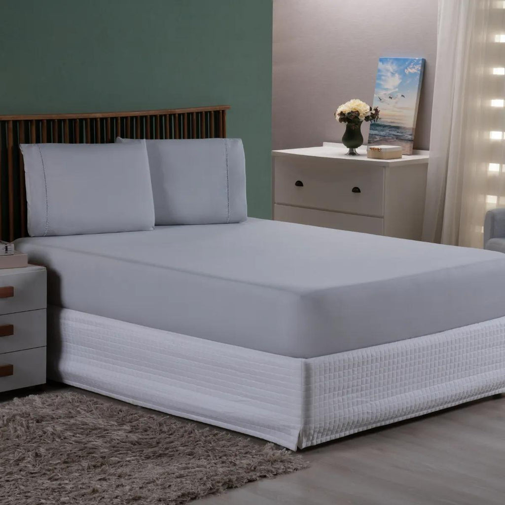 Jogo de Lençóis Queen Size LuckBaby® 400 Fios Micropercal Piquet – Toque Acetinado + Elástico 360° + Ponto Palito