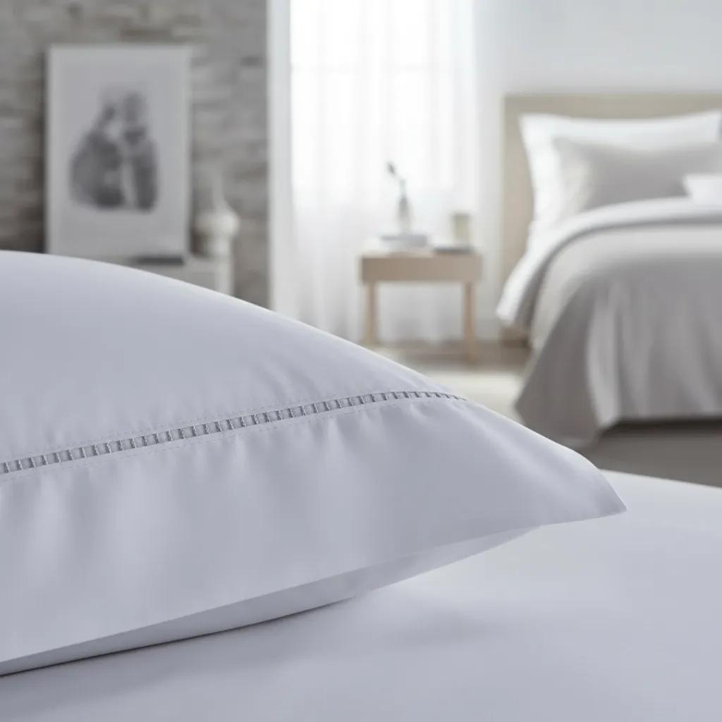 Acabamento Piquet + Ponto Palito nas fronhas – o detalhe clássico dos hotéis de luxo